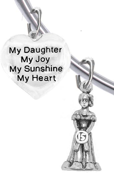The Perfect Gift, Quinceanera My Daughter, My Joy, My Sunshine, My Heart, Girl In Gown, Circle 15, Hypoallergenic Adjustable Removable Ball Ends, Bracelet, Safe-Nickel, Lead & Cadmium Free! FREE SHIPPING!